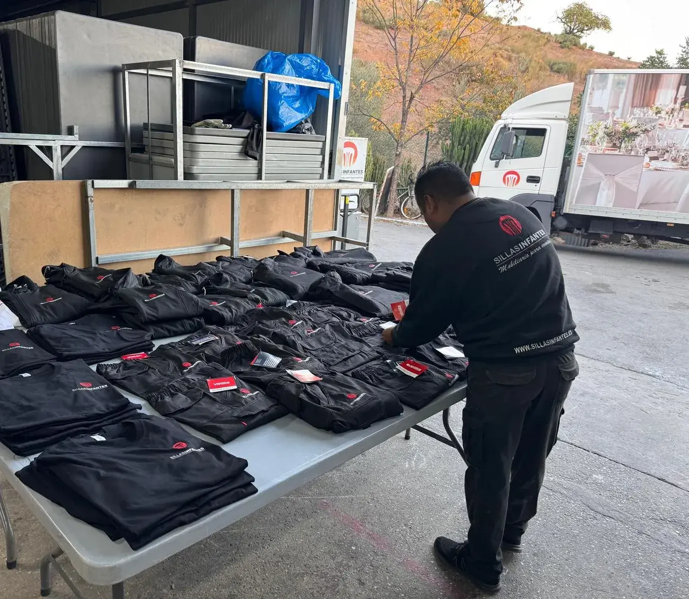 Desde la oficina, donde se gestiona cada solicitud, hasta los equipos de recogida y entrega, pasando por la preparación de pedidos, el tren de lavado, lavandería y personalización de textiles, cada fase del proceso se adapta a vuestras necesidades para que vuestro evento sea único.